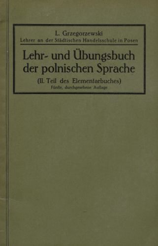 A110 023 – Elementarbuch der polnischen Sprache – Teil II (Lehr- und Übungsbuch) Sprache deutsch – polnisch Autor(en) L. Grzegorzewski Erscheinungsjahr 1926 Verlag Ferdinand Hirt in Breslau ISBN n/a A110 023_de_toc