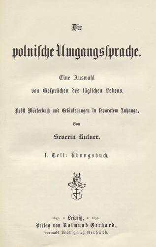 A110 071 – Die polnische Umgangssprache Sprache deutsch – polnisch Autor(en) Severin Kutner Erscheinungsjahr 1895 Verlag Verlag von Raimund Gerhard ISBN n/a A110 071_pl_toc